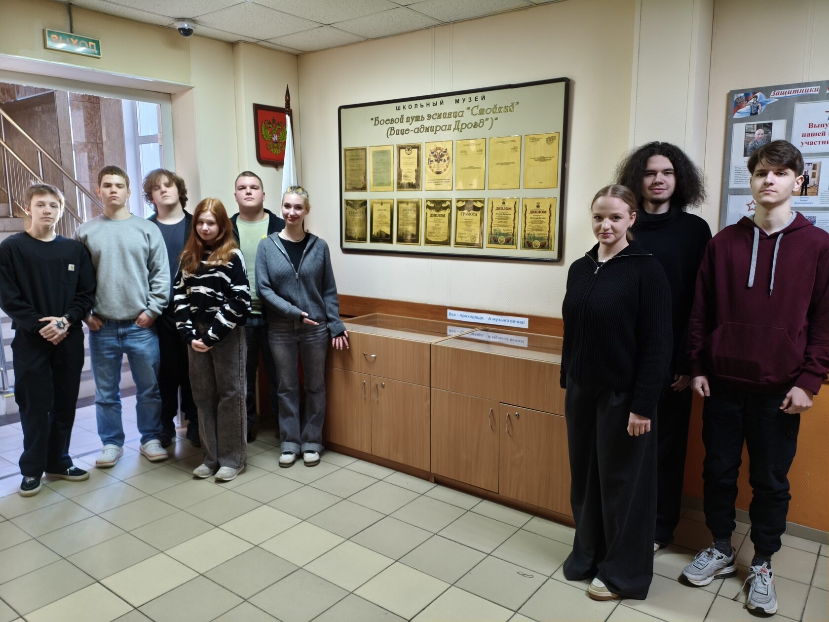 С 24 февраля 2026 года музей "Боевой путь эсминца "Стойкий" ("Вице-адмирал Дрозд")" школы №339 открыл временную выставку с поэтичным названием "Всё приходящее, а музыка вечна".