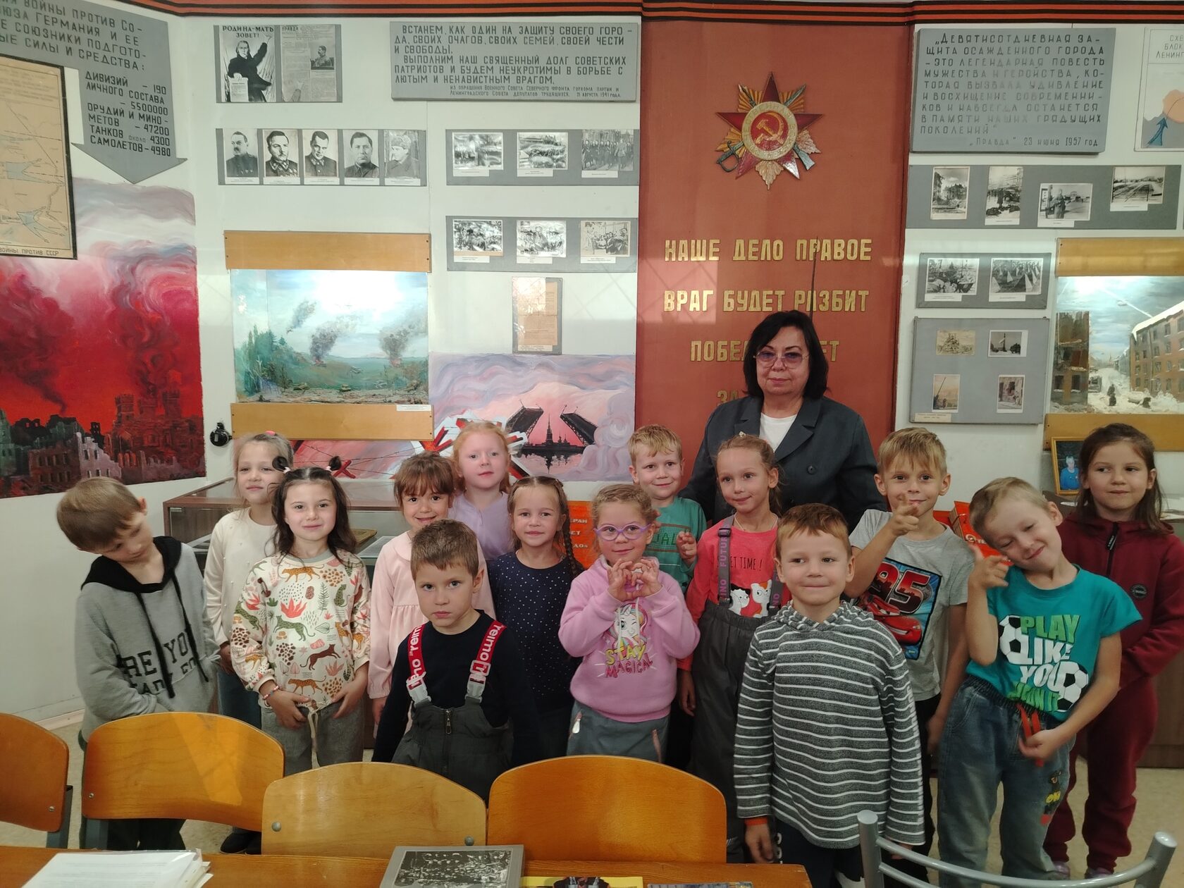 Дети с большим интересом слушали экскурсовода, задавали вопросы, рассматривая экспонаты. Ребятам рассказали историю начала войны, блокады Ленинграда о том, как наш народ шел к победе. Экскурсия была очень интересной, дети были в восторге от увиденного. Впечатлений у них было много. Ребятам хотелось все потрогать, все спросить, узнать, как можно больше о войне.