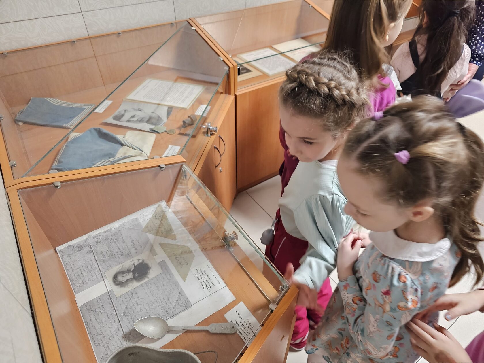 С интересом маленькие посетители узнали, как ходили в разведку, узнали об особом способе передачи информации– семафорной азбуке. Рассматривая экспонаты, слушая рассказ экскурсовода малыши начинают осознавать, что у каждого предмета есть история, есть она и у школы. Шло время, менялись ребята, школьная форма, учебники, название нашего города, а школа одна, всех встречала, учила, любила. Музей надеется, что эта встреча запомнится маленьким гостям и позволит сформировать желание открывать для себя новое и интересное, гордиться историей своей страны!