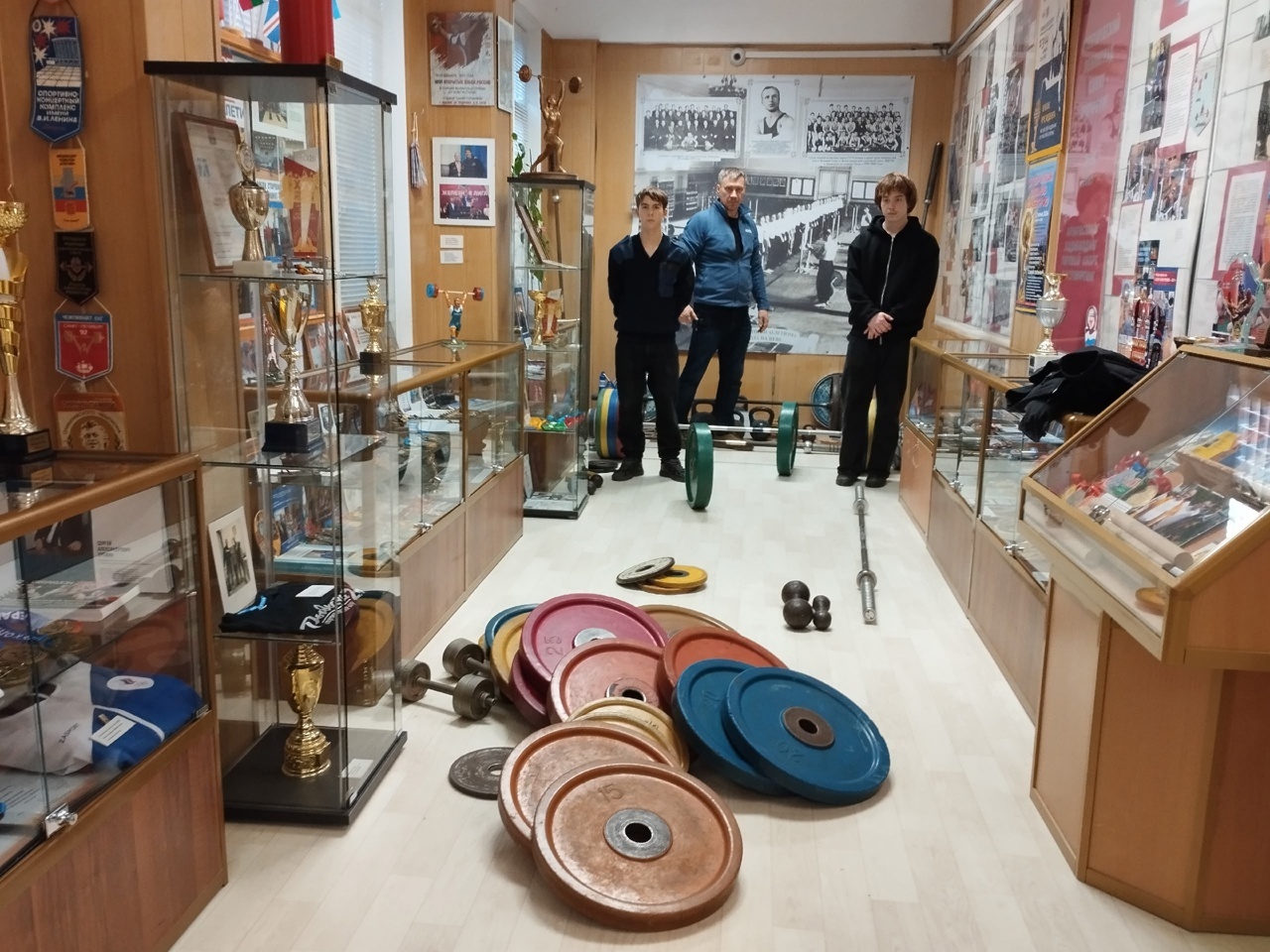 Экспонаты очень тяжёлые, и у них можно сказать была тренировка по поднятию и переносу тяжестей. Они были года 4 назад в музее и увидели как много появилось новых витрин с интересными медалями, кубками, материалами по тяжёлой атлетике и силовым видам спорта.