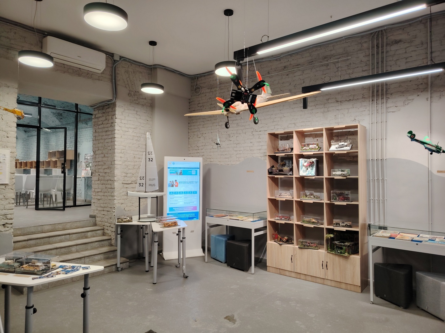 После мастер-класса гости познакомились с выставкой, которая сейчас работает в Открытом кампусе. Экспозиция «Транспорт и детская книга» объединила детскую литературу из фондов Фундаментальной библиотеки имени Императрицы Марии Федоровны и уникальные макеты с диорамами из частной коллекции Константина Мыльникова, а также из собраний Дворца детского творчества Петроградского района и Педагогического технопарка Герценовского университета. Выставка показывает, как тема транспорта отражалась в книжной иллюстрации и детском творчестве, и сама по себе может служить примером содержательного музейного проекта.